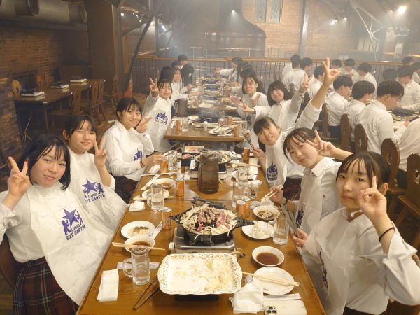 夜ご飯には、ジンギスカンを食べました。みんなで焼きながら食べるジンギスカンはとても美味しかったです。