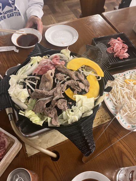 夜ご飯には、ジンギスカンを食べました。みんなで焼きながら食べるジンギスカンはとても美味しかったです。