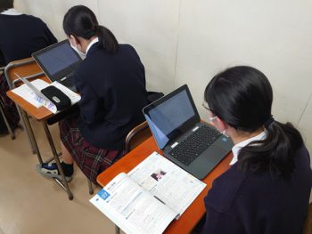 今年度より一人一台のChromebookが導入され、情報の授業も教室で自分のPCを使用して行っています。