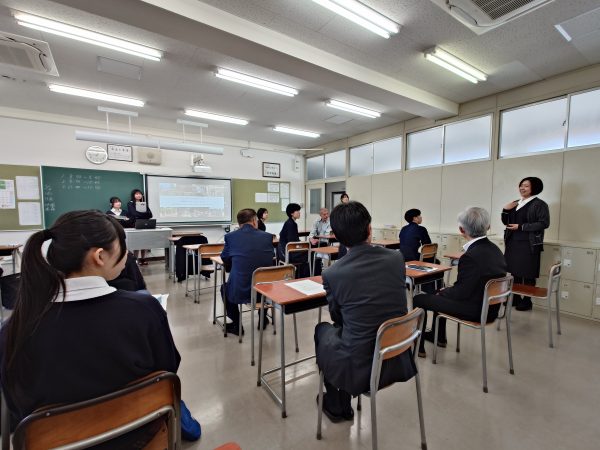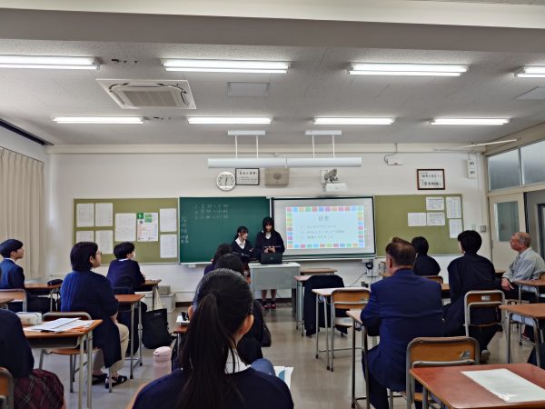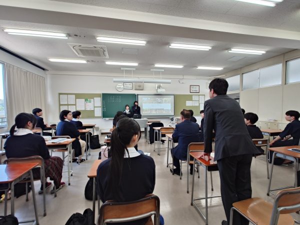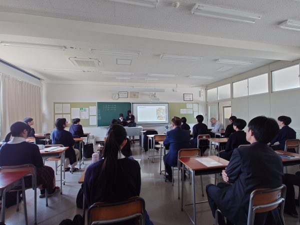 クラスメイトだけでなく、特別進学コースの後輩、教職員が2人の話を聞きに集まりました。