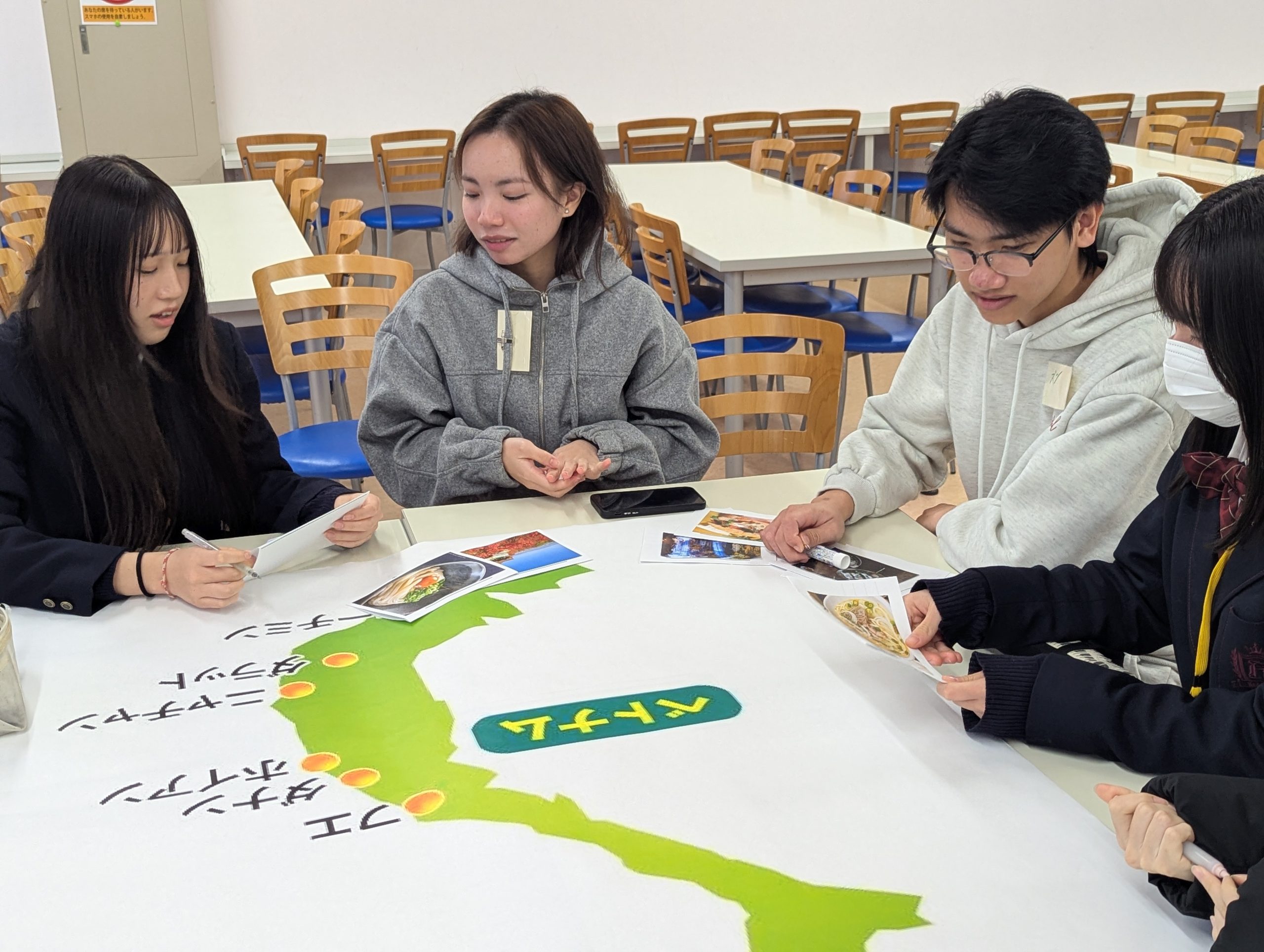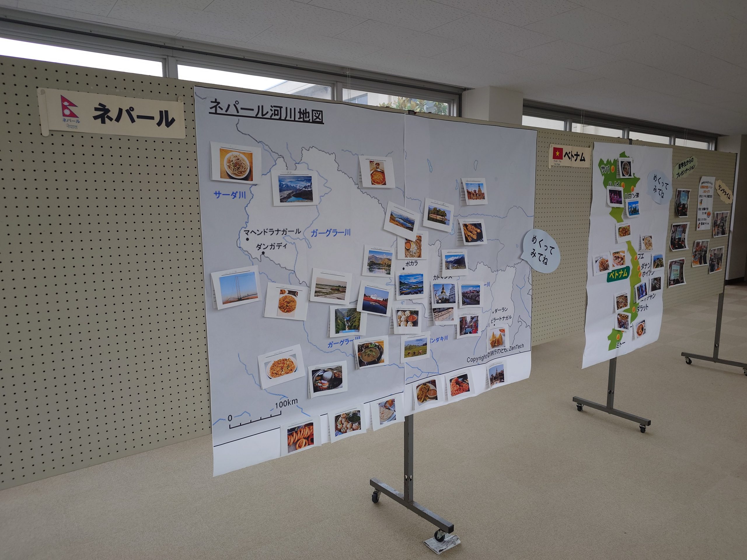 午後はネパール、ベトナム、日本の名所や特産品のカードに情報を記入し、大きな地図に貼っていきました。互いの国のことにあちらこちらで話に花が咲き、とても有意義なアクティビティとなりました。