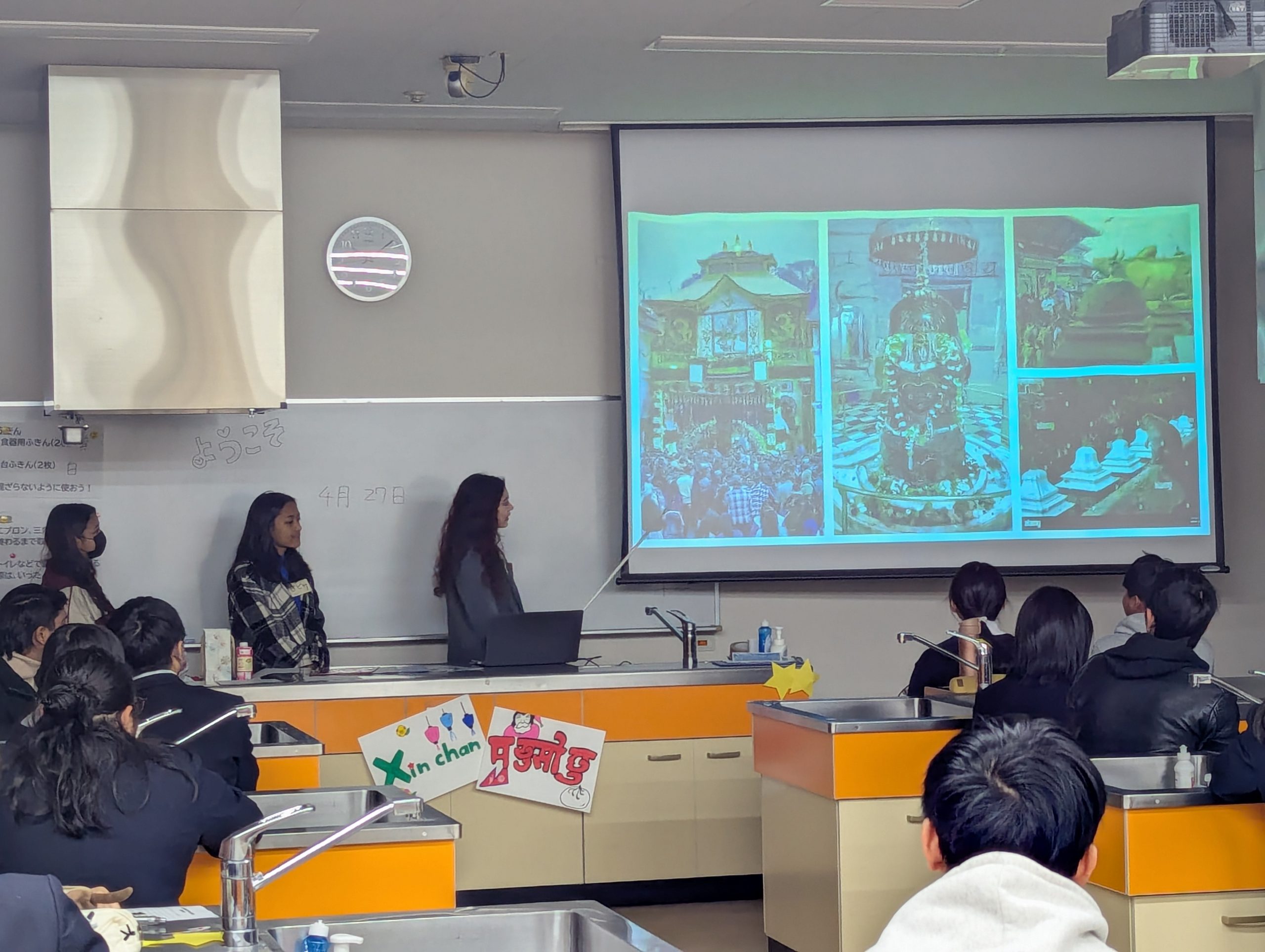 最初にアイスブレイクを行って、ちょっと緊張気味だった雰囲気も一気にほどけ、笑顔の花があちこちに。その後、留学生たちの出身地(今年はネパールとベトナム)について、頑張って習得した日本語を駆使してプレゼン。練習の成果はばっちりでした。