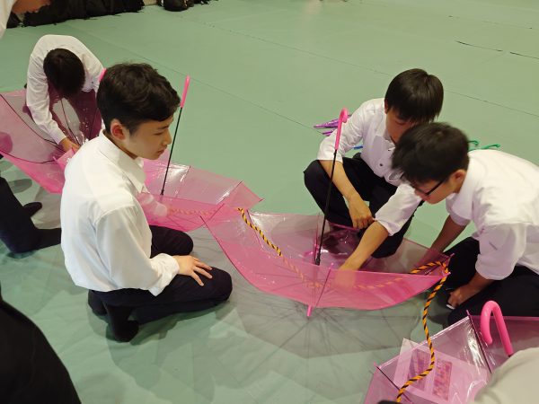 広陵祭前日の校内は、展示やテントなどの準備が急ピッチで進められていました。