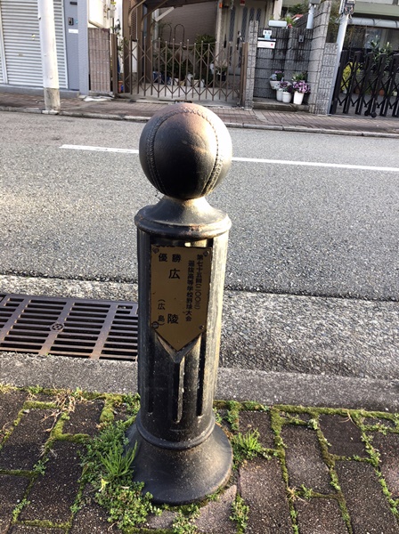 阪神甲子園球場南側の市道には、春夏の歴代優勝校の校名が入ったポールが並んでいます。