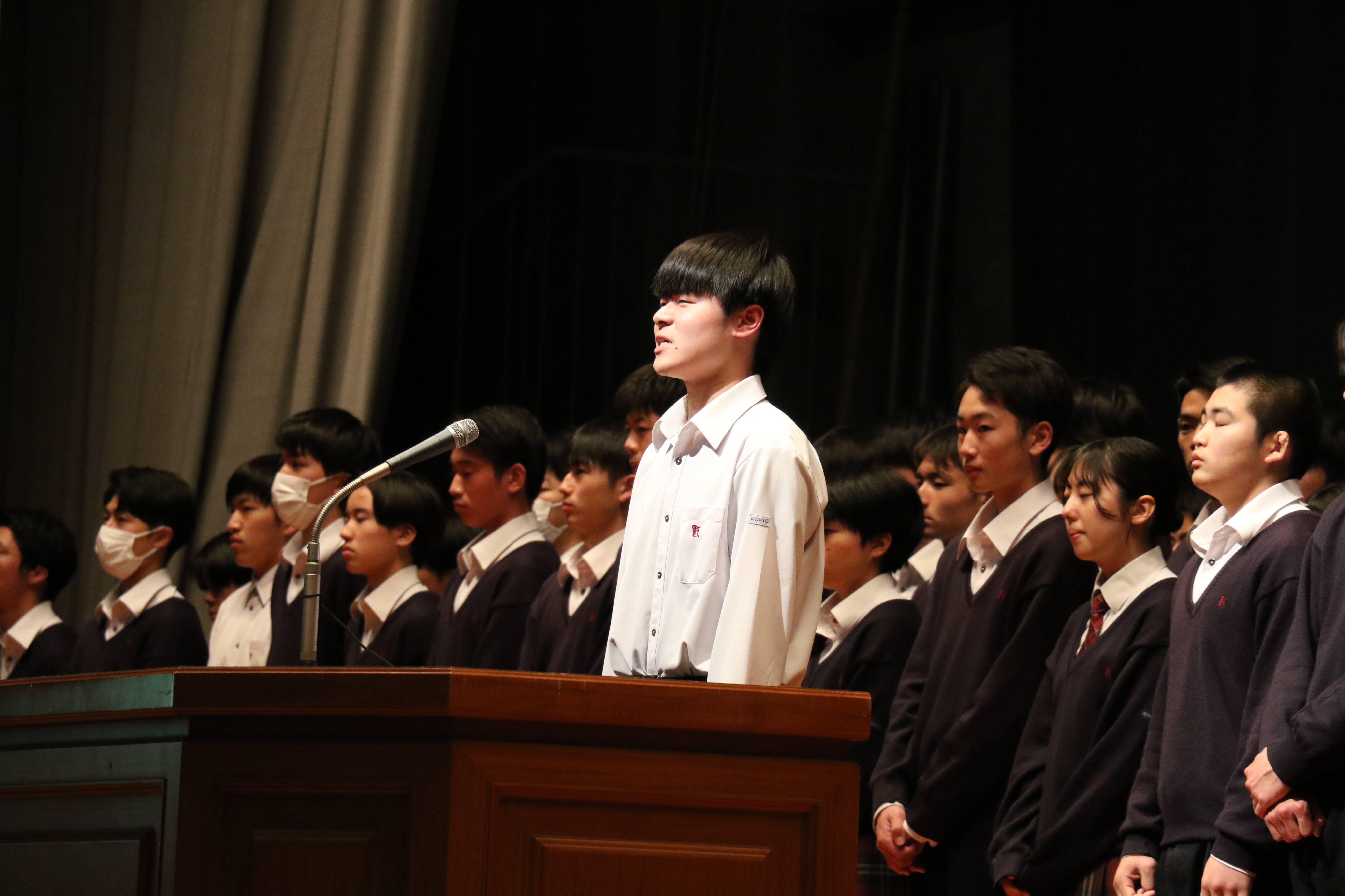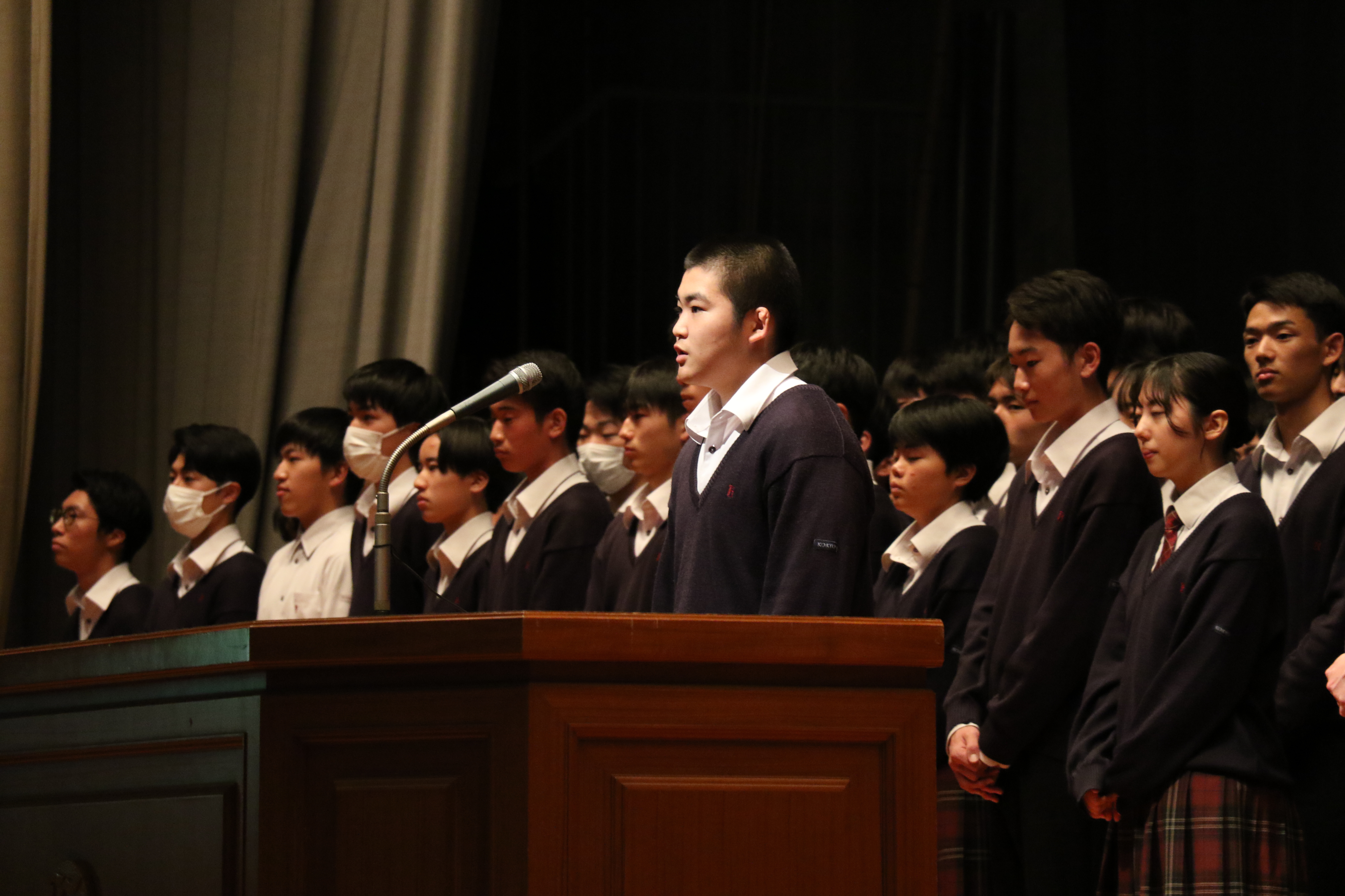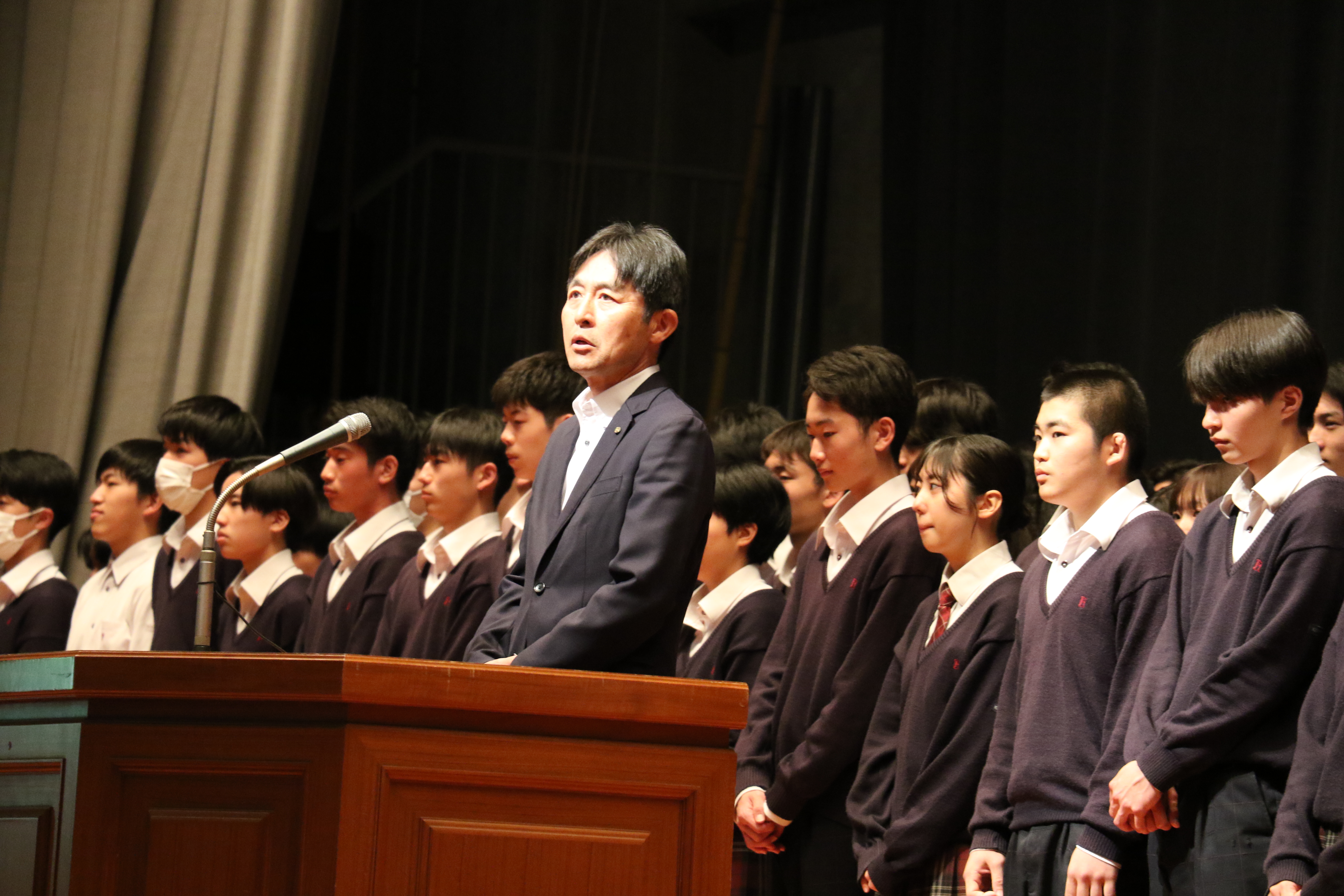 出場部活動紹介のあと、校長先生と向井生徒会長より、それぞれ激励のことばが送られました。