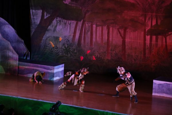オオカミに育てられた人間の少年が、ジャングルの動物と人間の家族とともに成長していく様子を、コミカルな要素を交えて演じてくださいました。