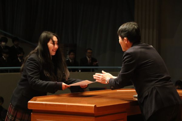 各学年に対してメッセージを送られたあと、2学期の終業式でお話しされた「校歌を大切にすること」について改めて話されました。