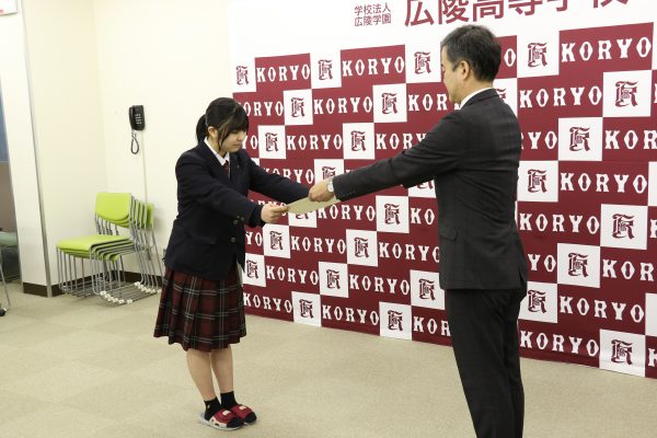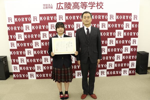1年A組 貞任凛香さんが優秀賞<広島県警察本部>を受賞しました。