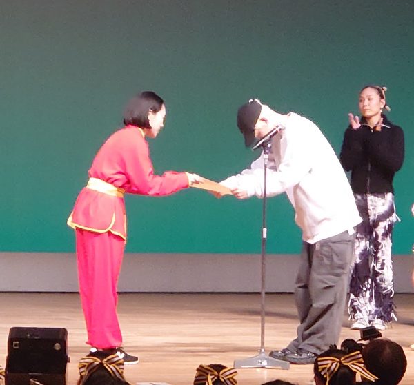 「カンフー映画を見て、動きを勉強しました。目指していた大賞に届かず悔しい思いがありますが、また明日から練習に励みたいと思います。今後とも応援お願いいたします。」