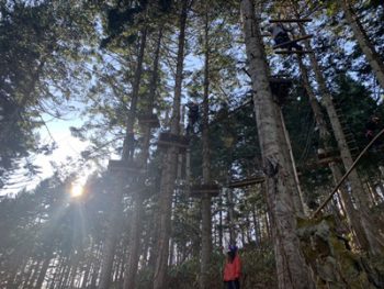 ・すごく高さが高くて足が震えました。でも少しずつ進んでいくうちに慣れていきました。一回も落ちずにできました。