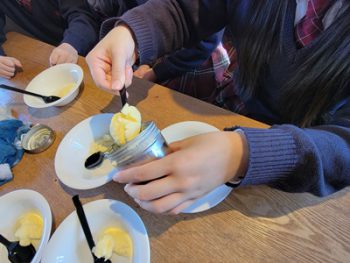 ・キャラメルやアイス作りでずっと混ぜたり振ったりするのが大変だったけどすごく美味しかったです。