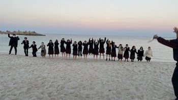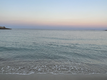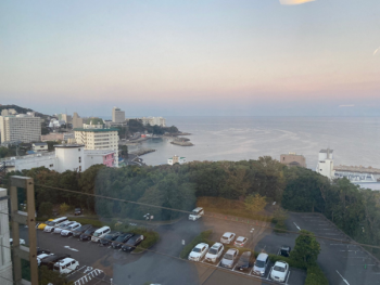 朝食前にEarly Bird Walk(早起き散歩)をホテル前の白良浜で行いました。快晴で日の出前だったので、白み始めた空と水平線を見て生徒たちも歓声をあげていました。