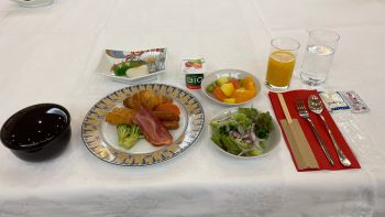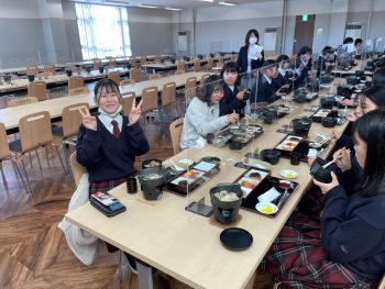 朝食を済ませ、千畳敷や三段壁洞窟、とれとれ市場でお土産などを買いました。朝食は非常にボリュームがあり、しっかりエネルギーを蓄えることができたようです(朝あまり食べない生徒にとっては過酷だったかも)。また千畳敷や三段壁洞窟などは和歌山の自然美を堪能することができたようです。