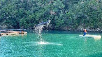 昼食を済ませ、宿泊する太地町にあるクジラ博物館を訪れ、捕鯨の歴史や文化、さらにはクジラやイルカのショーも見学ができ、昨日とは違う面白さを味わうことができました。