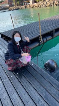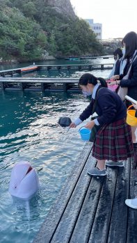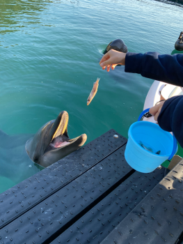 初めてイルカの餌やりをしました。餌をあげる度にイルカが可愛く鳴いてくれたのでつい餌をやりすぎてしまいました。とても良い思い出になりました。
