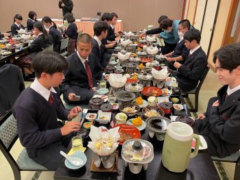 生徒の体調を確認し、朝食後、那智の滝や那智大社に向かいました。