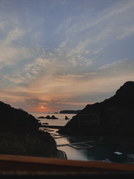 朝日は散歩コースからは見えなかったのでホテルの6階から見たところとっても綺麗に海と反射していて心奪われました!太陽が登っていくうちにイルカさんもどんどん元気になってジャンプしてる姿が見れたのはとても幸せでした!