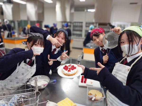 調理室から楽しそうな声が聞こえたのでのぞいてみると、デコレーションケーキを作っていました。
