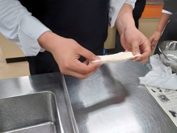 調理室で一生懸命何かを捏ねている2年生の姿がありました。