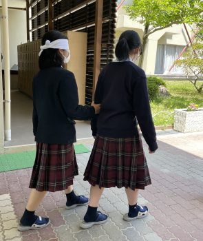 家庭基礎「共に生きる」という単元において、視覚弱者の方の日常を知るという学習活動を行いました。