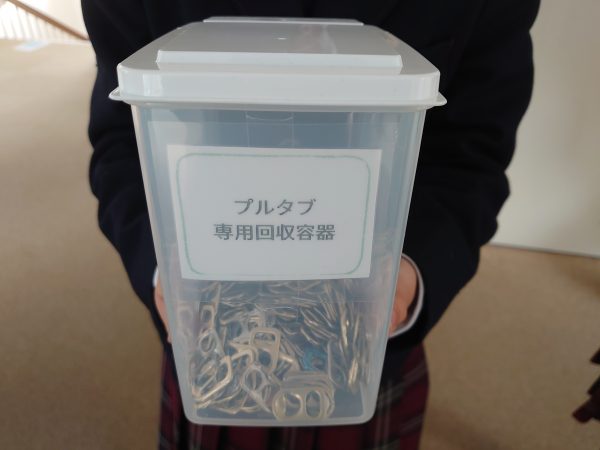 校内に回収ボックスが設置されているので、飲み終わったらプルタブを入れましょう!
