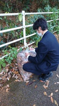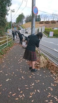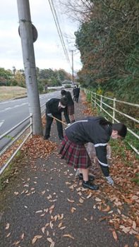 アストラムライン伴駅から本校南門に続く道の落ち葉やゴミ拾いを中心に行いました。