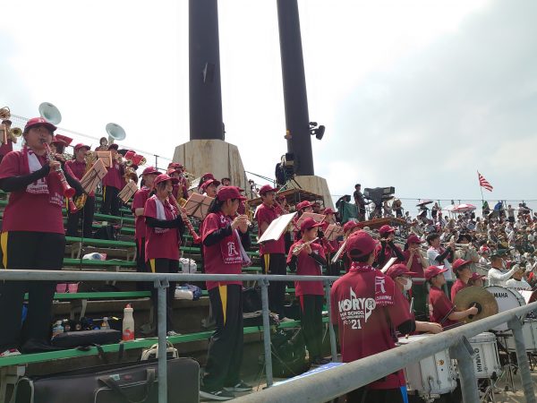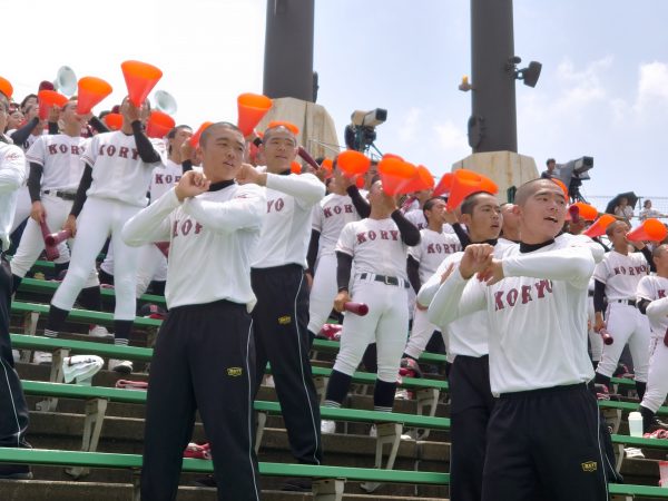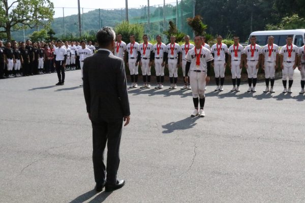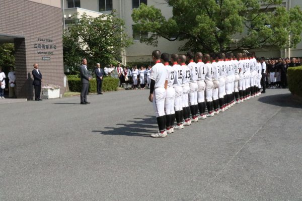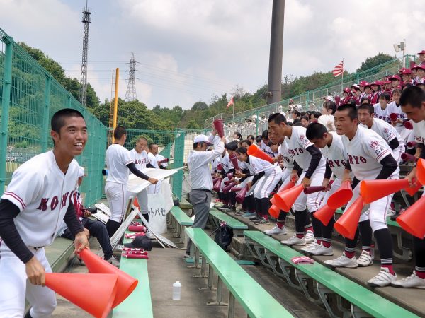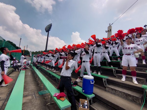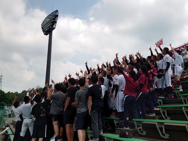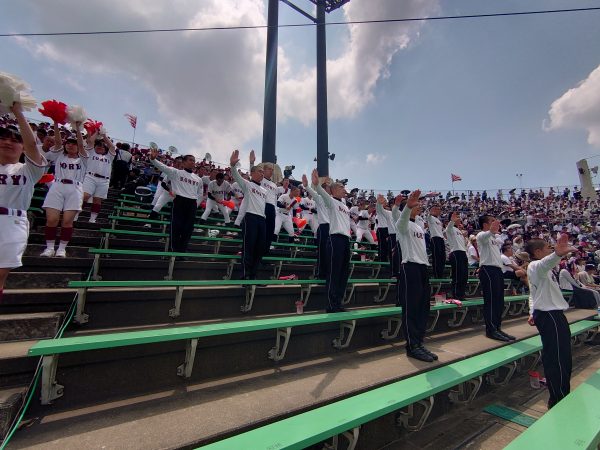 硬式野球部、女子硬式野球部、吹奏楽部、ダンス部に加えて、応援を希望した生徒も応援団に加わり、約300名の生徒が球場に駆けつけました。