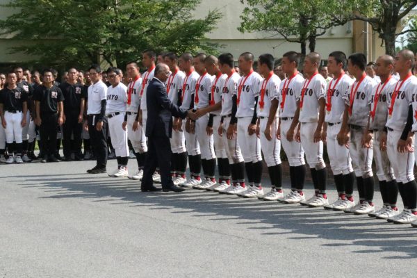 学校に戻ってくると、優勝報告会が行われました。中井監督、小林主将から熱い話があり、甲子園に向けての強い決意を聞くことができました。