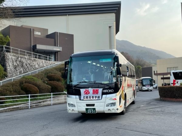 3月26日(日)に行われる予定でしたが、雨天順延となり、本日27日(月)午前7時に硬式野球部や吹奏楽部、ダンス部や一般の生徒、教職員がバスで出発しました。