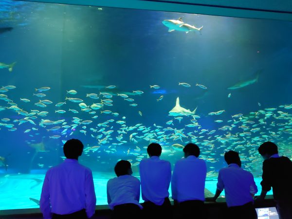 2学年は遠足で島根県のしまね海洋館アクアスに向かいました。 シロイルカのパフォーマンスショーや大きい水槽などを観て楽しみました。