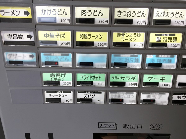 ラーメンにも中華そば、豚骨しょうゆラーメン、和風ラーメンの3種類あり、替え玉やトッピングもあって人気のメニューです。