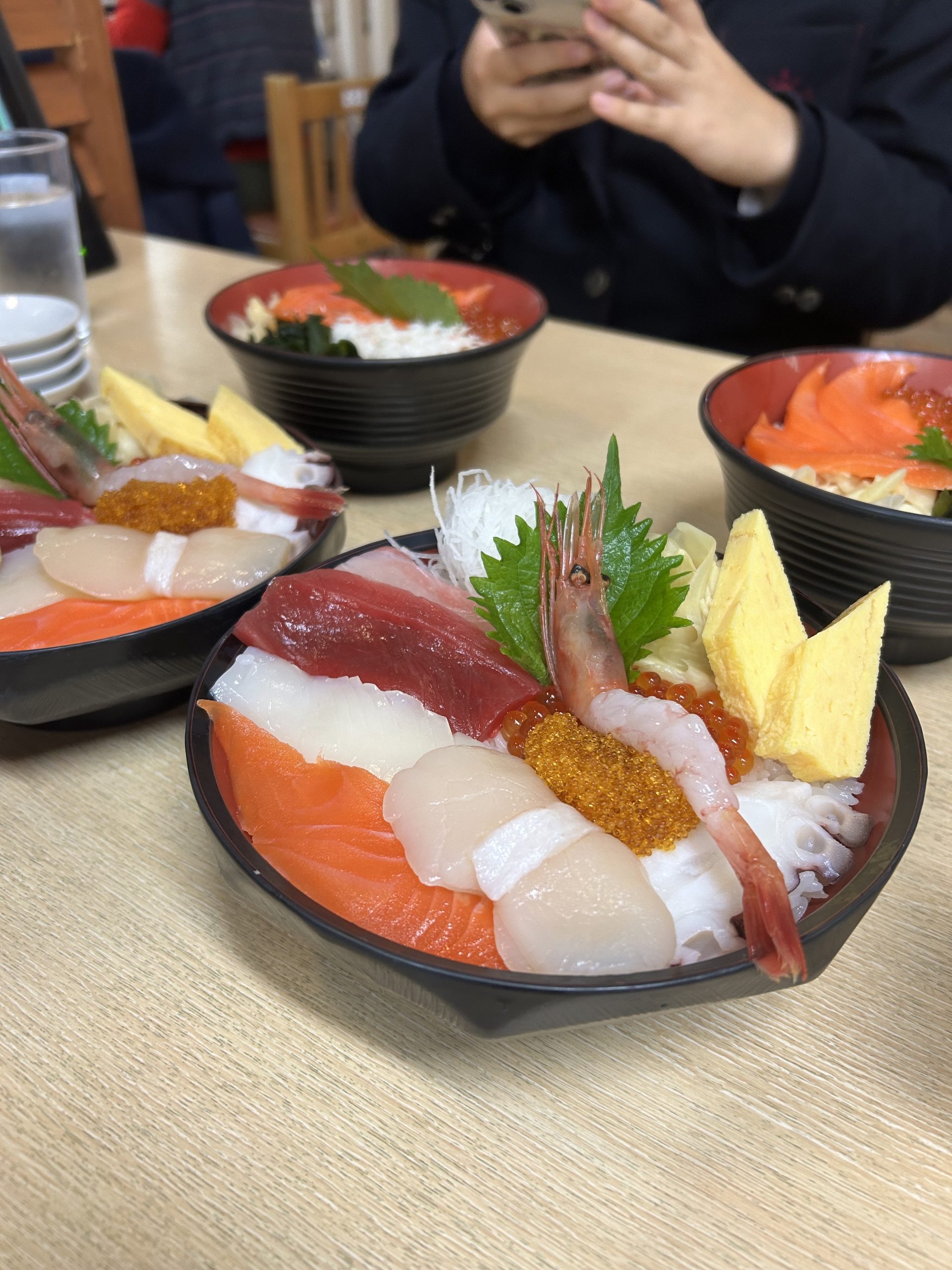 ◆今日は小樽で食べ歩きをしました。雨がとても凄かったけどいろいろなものを食べることができて良かったです。本場の海鮮丼も食べることができました。新鮮でとても美味しかったです。夜にはジンギスカンも食べ、北海道の食に触れることができました。
