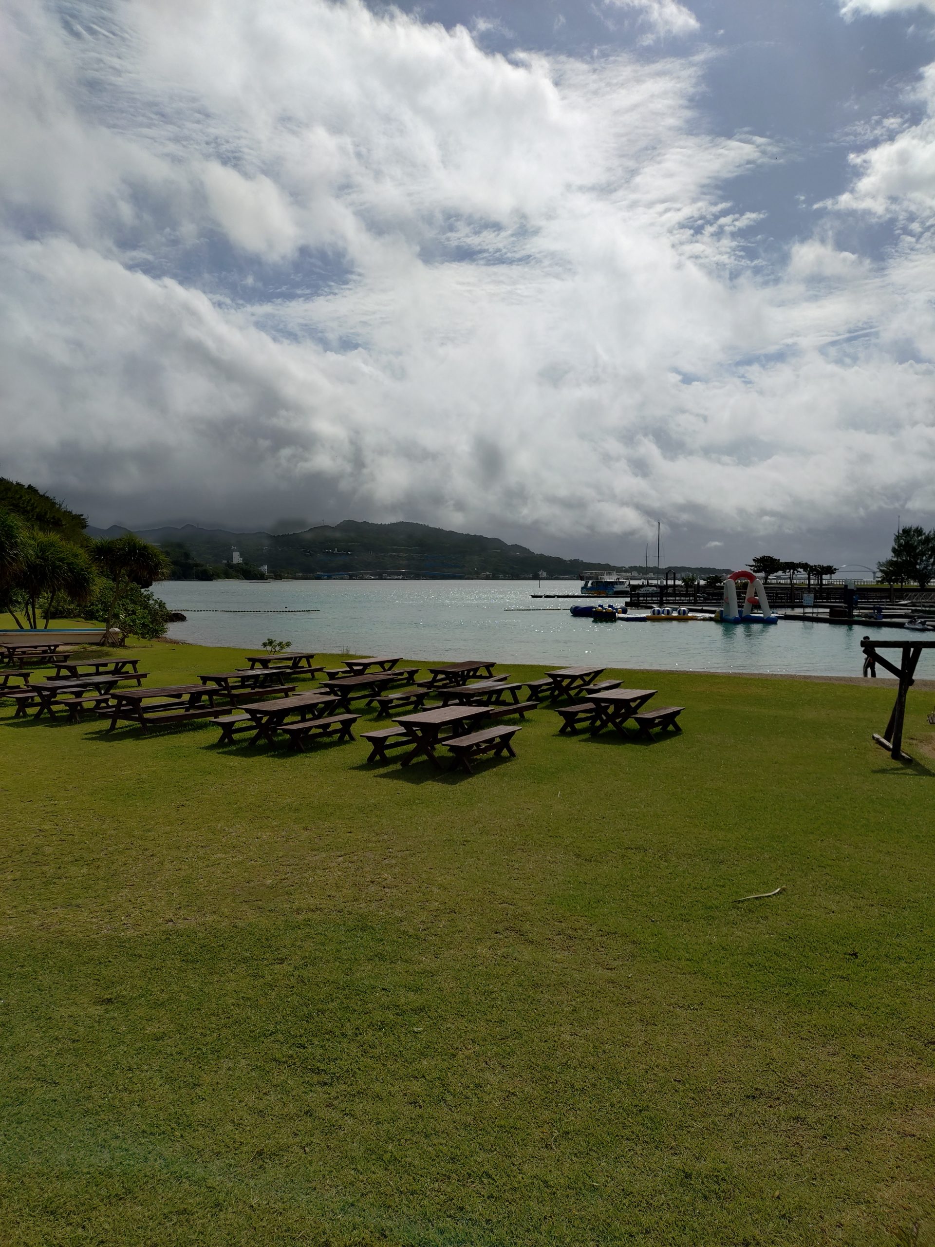 ・少しだけ晴れて、綺麗な海を見ることができたので良かった。水族館は人が多くて見るのが大変だったけど魚も大好きなクラゲも見れたので満足。陶芸体験では時間が無い中で可愛いシーサーも作れたけど、サバニ体験では大雨が降ってビシャビシャになってしまった。でも記憶に残る出来事になったから良かった。