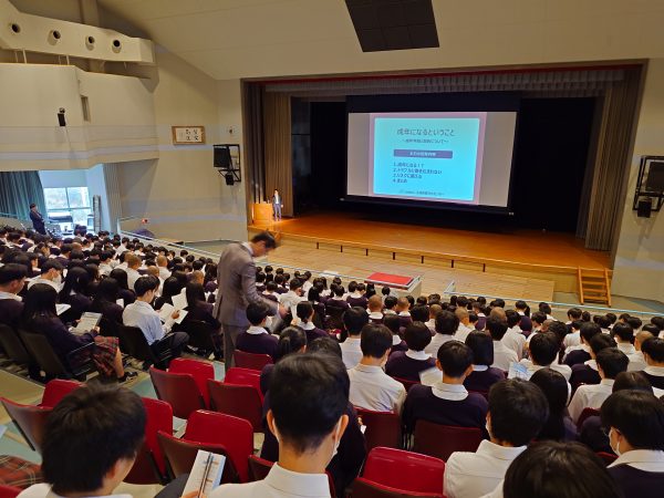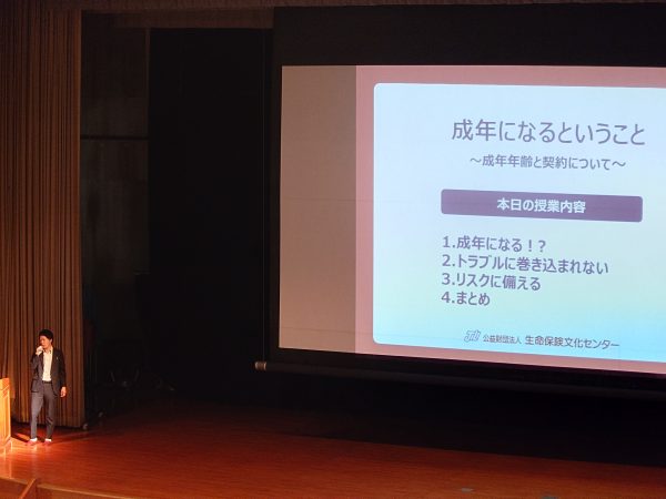 生命保険文化センターより講師の先生にお越しいただき、3年生対象の18歳成人講演会を行いました。