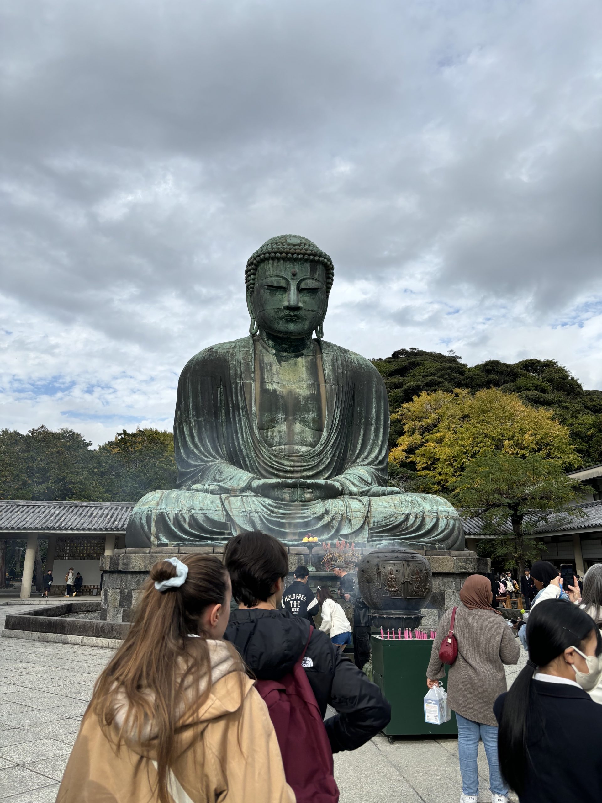 新幹線で新横浜駅に到着後は、まず鎌倉へ。大仏を前に記念撮影をしながら、歴史ある街並みを満喫しました。