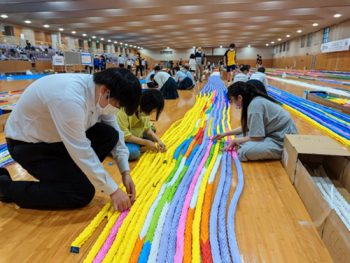 このプロジェクトは県内の子どもたちから募った折り鶴をつなげて世界一の長さに挑戦するもので、本校でも、6月の広陵祭に向けて在校生が鶴を折りました。