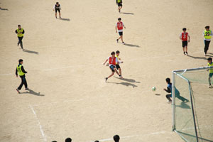 今年は密や接触をできるだけ避けるということで男子がサッカー、女子はドッジボールです。