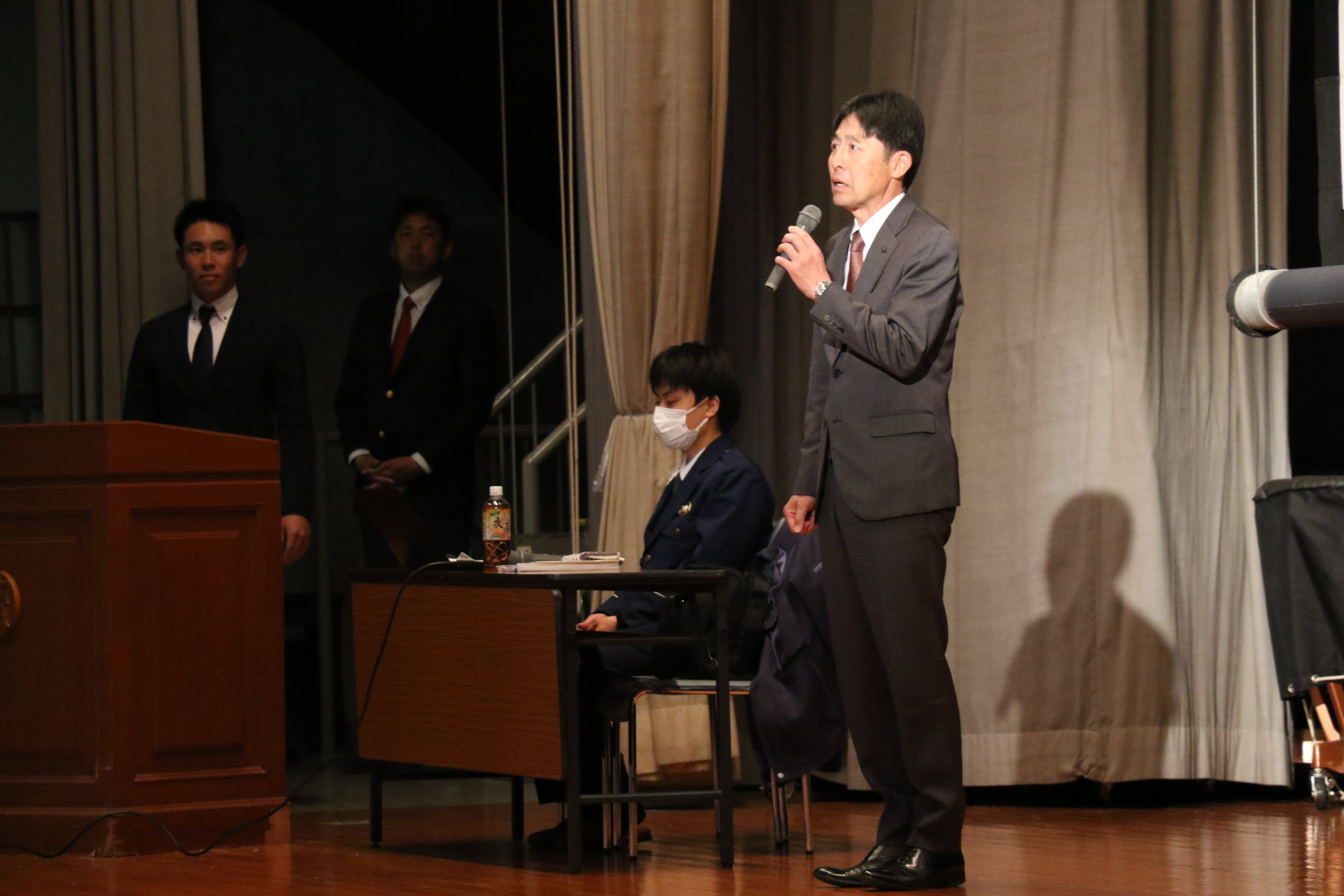 講師の先生のお話に先駆け、堀校長からも、高校生による大きな自転車事故も増えており、家族や周りの人をも巻き込んでしまうことになると注意喚起が行われました。