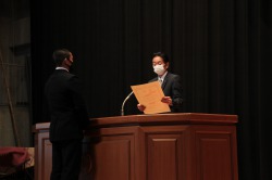 昨年度は新型コロナウイルス感染拡大防止の関係で配信による式典でしたが、今年度より感染対策を徹底し、講堂での式典を行う予定です。