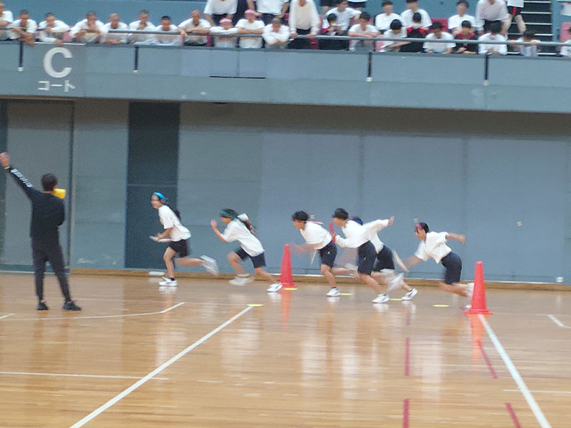 互いに声を掛け合いながらクラス全員でバトンをつなぎました。