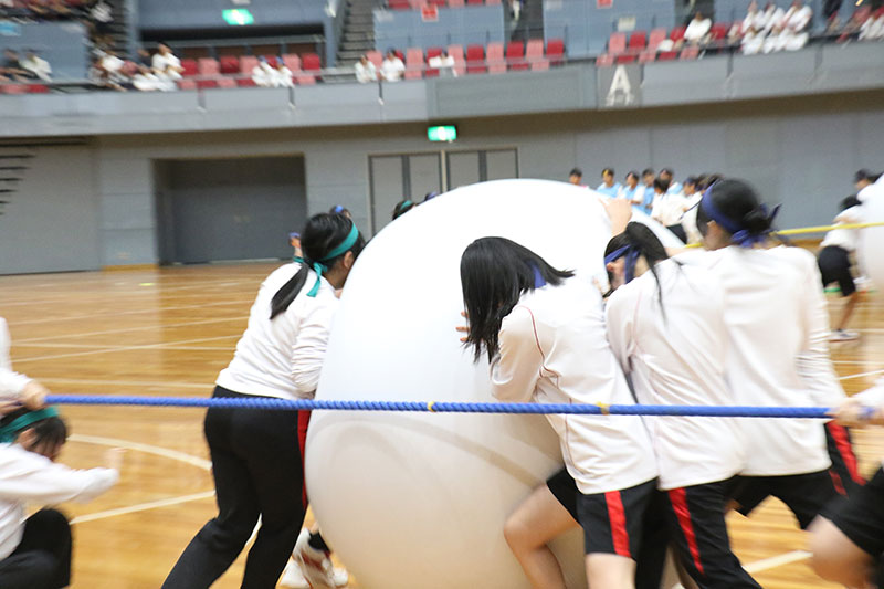 大玉、縄、カラーコーンなどを自陣に運び入れ、そのトータルポイントを競います。バーゲンセールさながらの死闘が繰り広げられました。