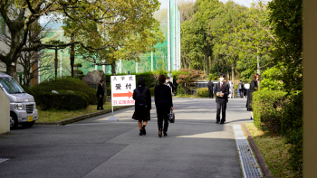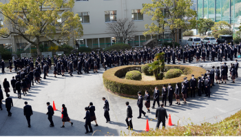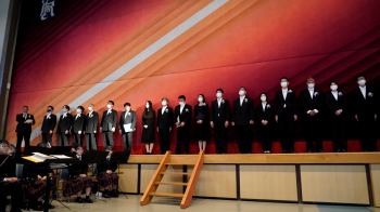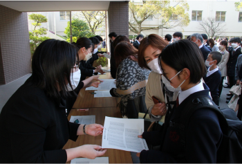 満開の桜の花びらが散り始めた春のよき日に入学式が行われました。1100席ほどの固定席がある講堂で手指消毒や換気を徹底した上で、午前10時に開式いたしました。