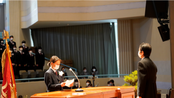 その後は永富千紘さんが新入生代表として宣誓をいたしました。これからの長い歴史を持つ広陵高校に入学した思いや、これからの高校生活に掛けた思いを、凛とした姿勢で述べていただきました。