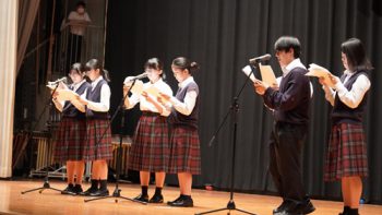 本日はステージ発表です。3年生のみ講堂に入場という形でしたが、開催できたことが一歩前進です。