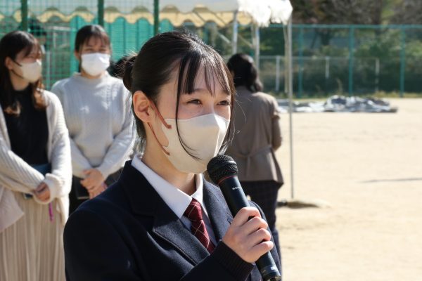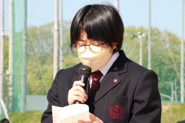 「心配や不安なことがあるかと思いますが、2・3年生を頼ってください。3年間、目標を持って頑張ってください」と在校生を代表して挨拶をしました。