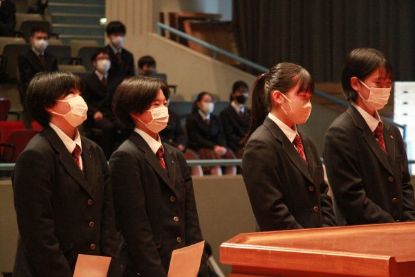 堀校長先生から「学校というところは、みんなにとって居心地のいい場所でなければならない。自分が居やすい場所を作るために思いやりを持って行動して下さい。身の回りのことに気を配りながら思いやりの気持ちを持って行動するのです。また、一人一人頑張らなければならない時が必ずやって来る。その時、頑張ることができる自分を今育てておくことが必要である。結果はどうであれ、何か頑張ることができることを見つけ、それに向かって一生懸命に取り組むことが成長するということである。」とお話がありました。