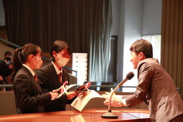 表彰披露ではテニス部と数検合格した生徒が表彰されました。