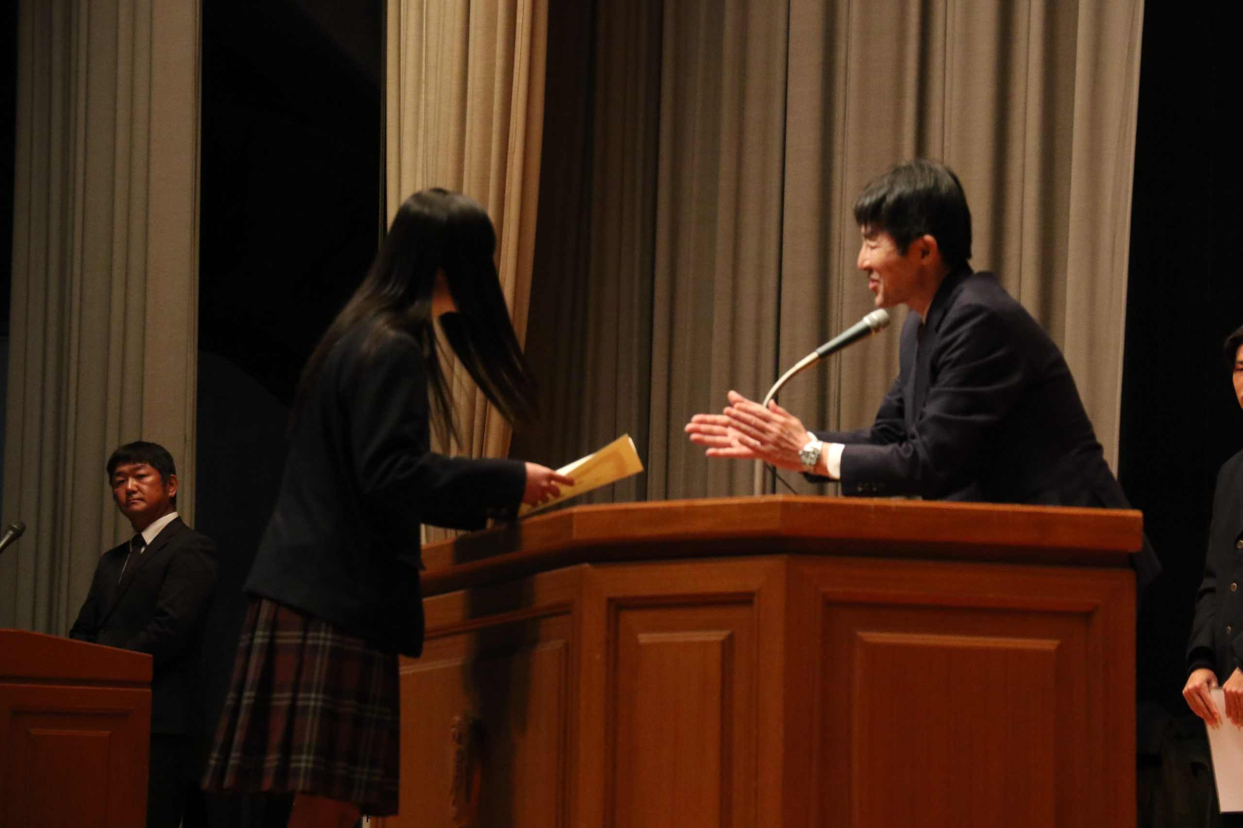 また、表彰披露も行われ、各分野で成果を収めた生徒たちが全校生徒の前で紹介されました。