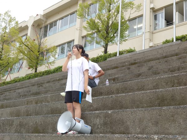 生徒会執行部のメンバーが見本を示し、その後は各クラスでの練習に移りました。