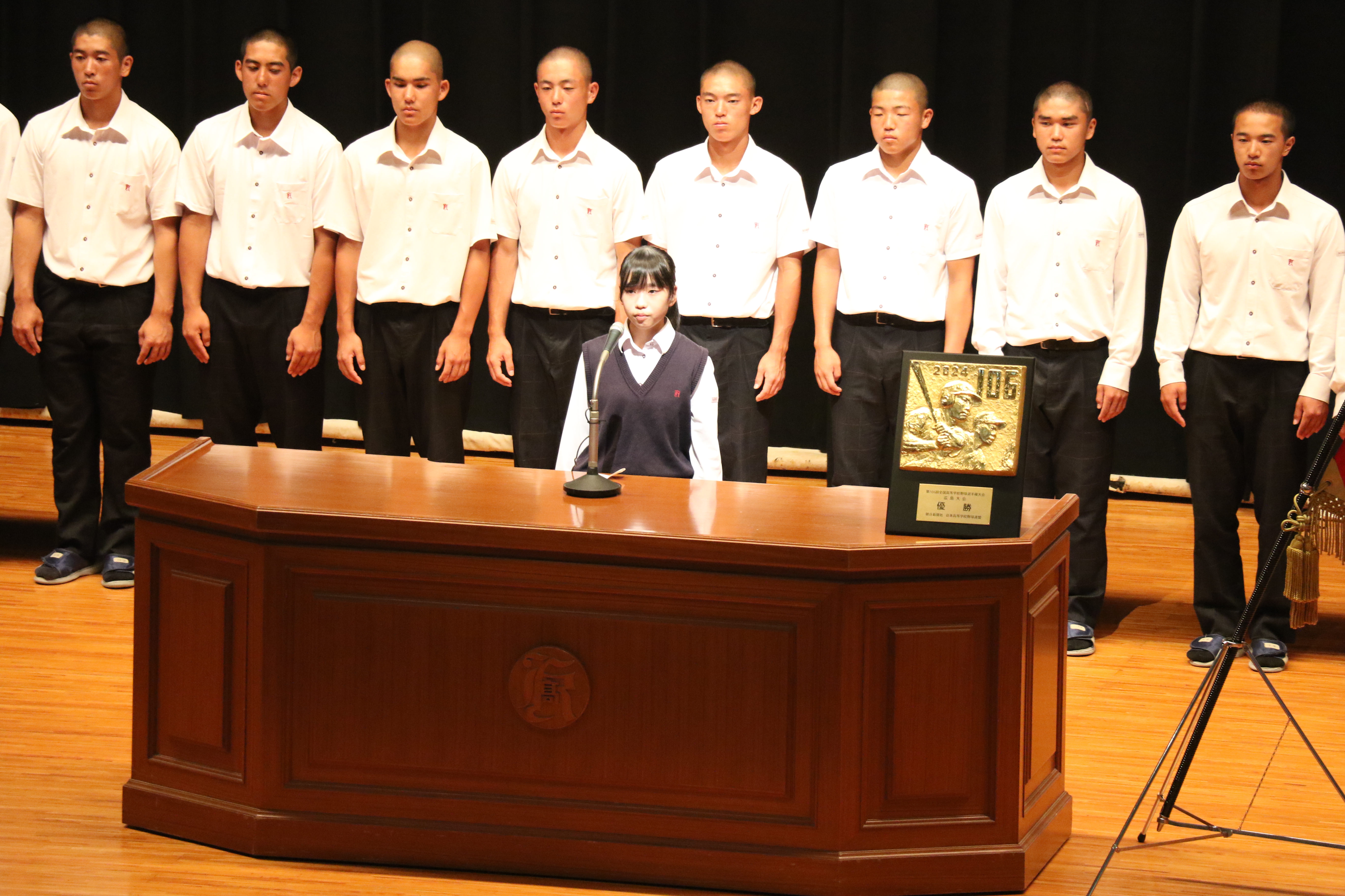 選手代表お礼のことば 硬式野球部主将 只石くん